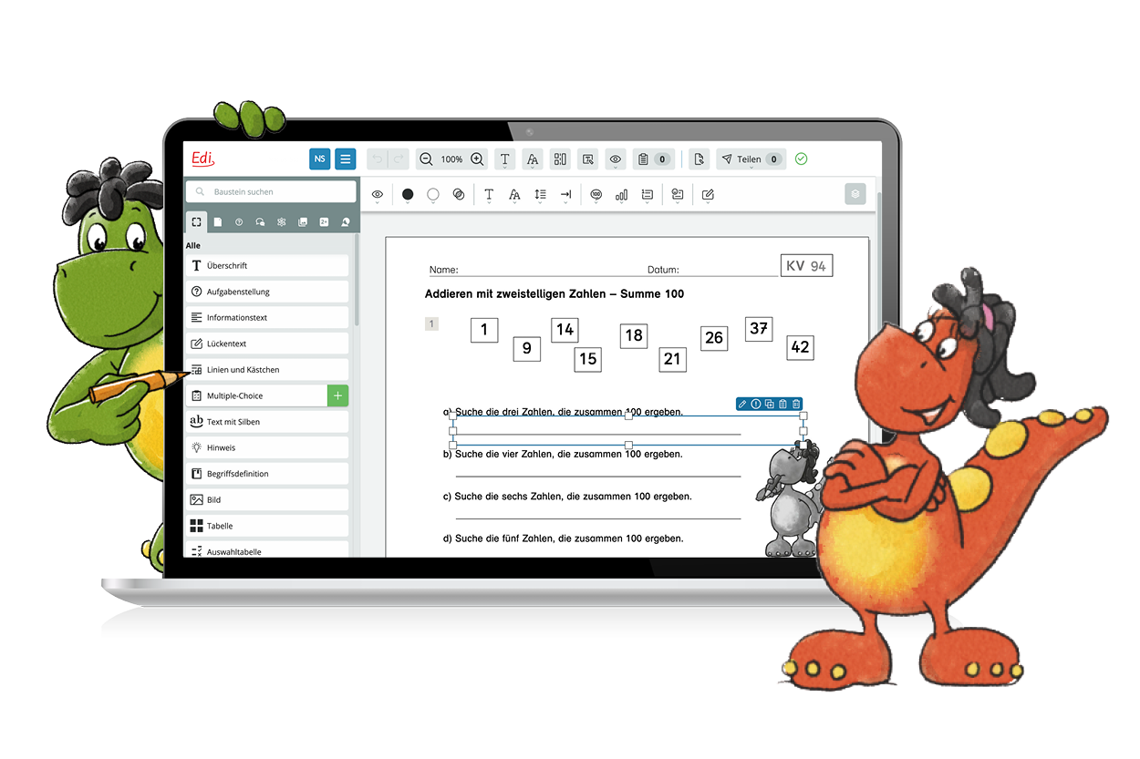 Die Edi-Arbeitsblätter passen zum Design und zur Konzeption des jeweiligen Lehrwerks. Dadurch haben Sie die Freiheit, Ihre Arbeitsblätter individuell zu gestalten. Gleichzeitig können sich die Kinder ganz einfach orientieren.